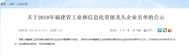 | 熱烈祝賀天守股份公司被認定為“福建省工業和信息化省級龍頭企業”! |