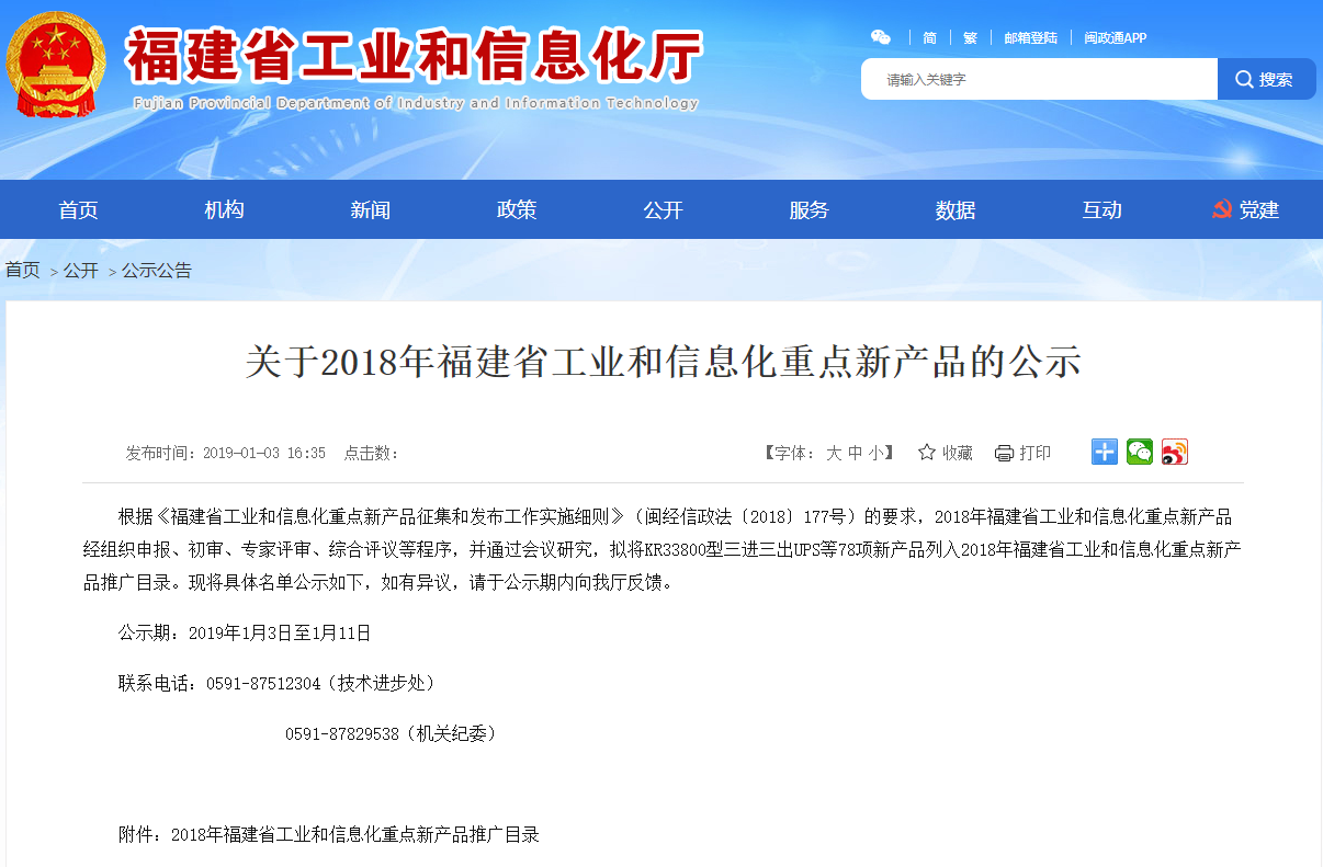 | 熱烈祝賀天守股份榮獲2018年福建省工業和信息化重點新產品 |